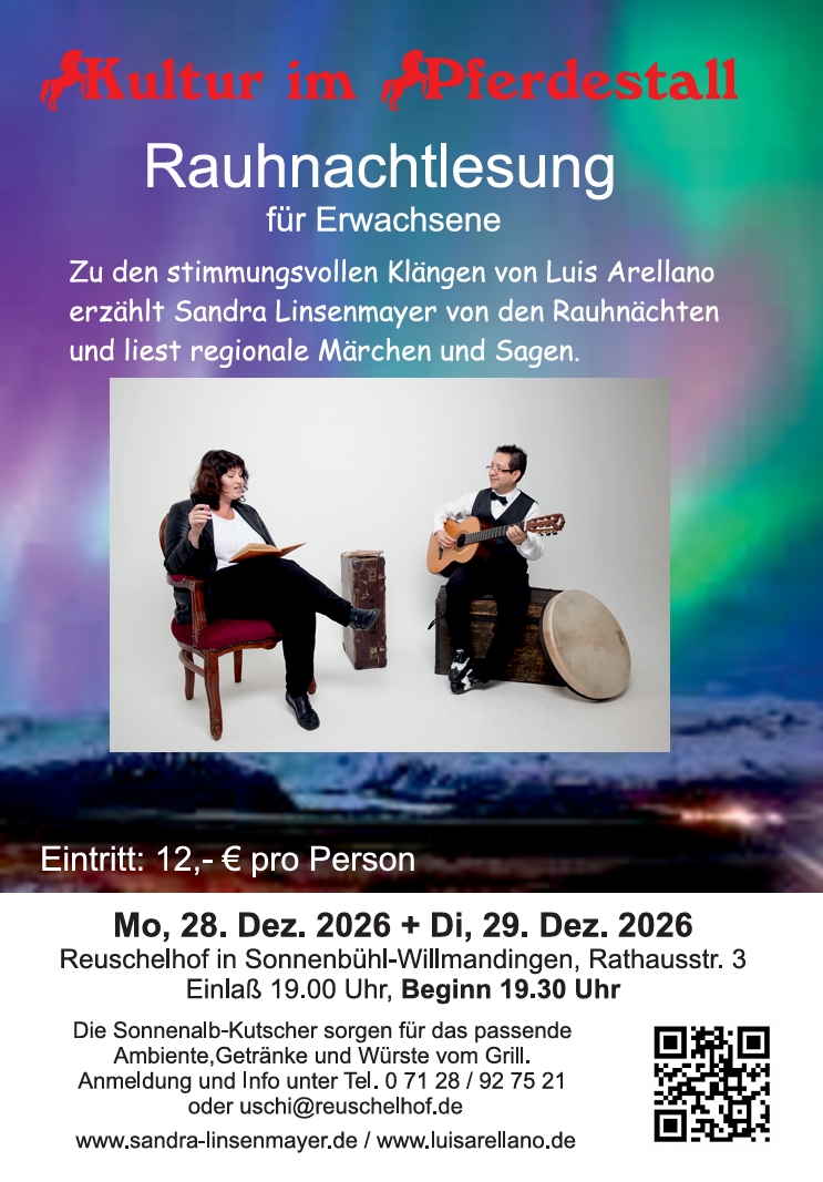 28.12. und 29.12. 19:30 Uhr Rauhnachtlesung mit Musik, Reuschelhof, Sonnenbühl-Willmandingen: